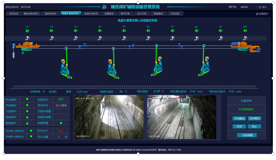 融合猴车、斜巷绞车、无极绳,可实现远控、监测、AI联动自动停车;支持控制类如:皮带、水泵、通风机等系统视频分析的联动告警与控制;